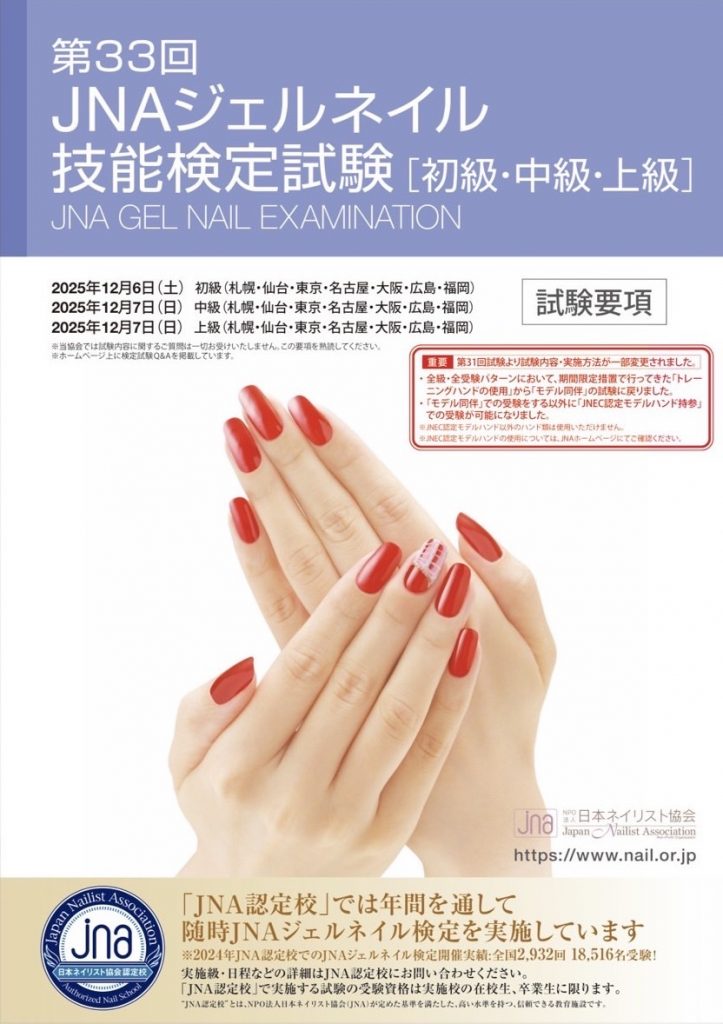 2025.10.17 ⭐️12/3ジェル検定中級・上級時校開催⭐️ 前回は7月に開催! 受験された皆さん100%合格でした‼️ 当校の生徒さんは自校で受験する事が可能なので 普段通りの環境で落ち着いて 受験する事ができます✨ 前のお知らせへ お知らせ一覧